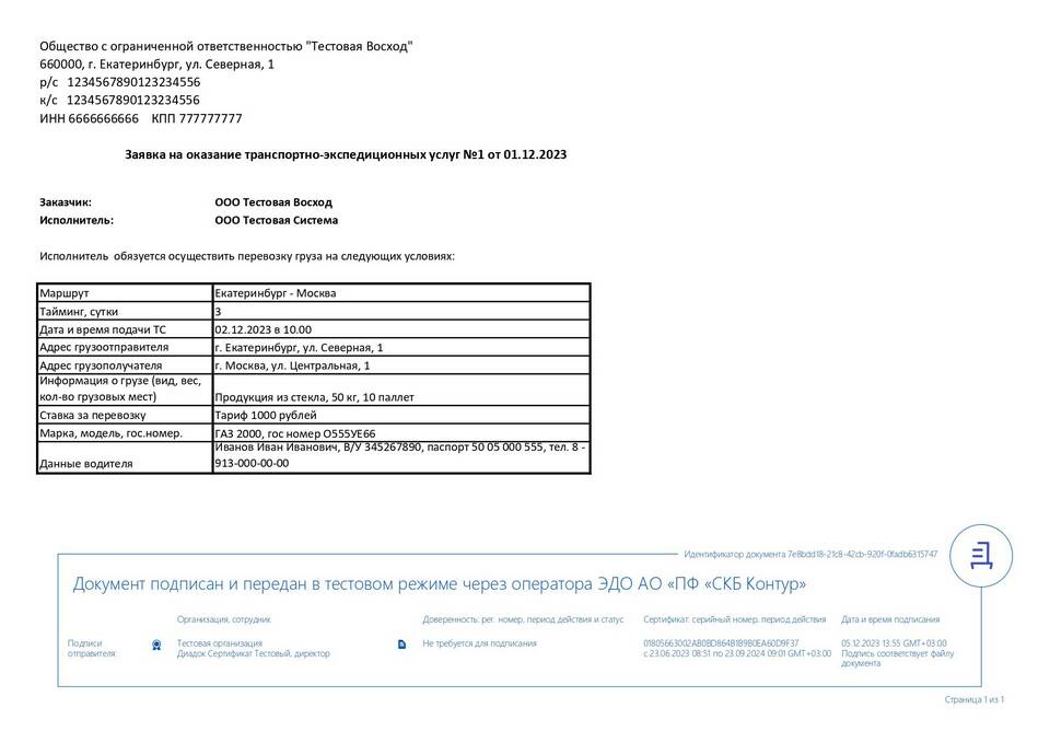 После отправки система уведомит вас о доставке документа. Водитель или представитель организации должен подтвердить получение своей электронной подписью.